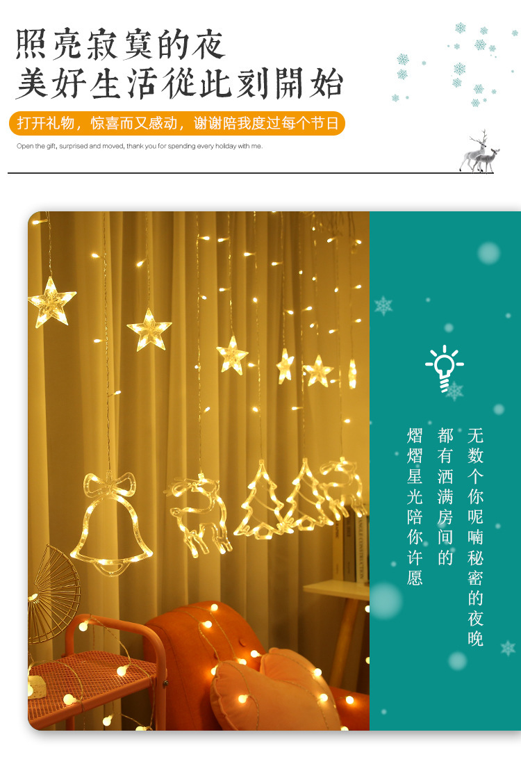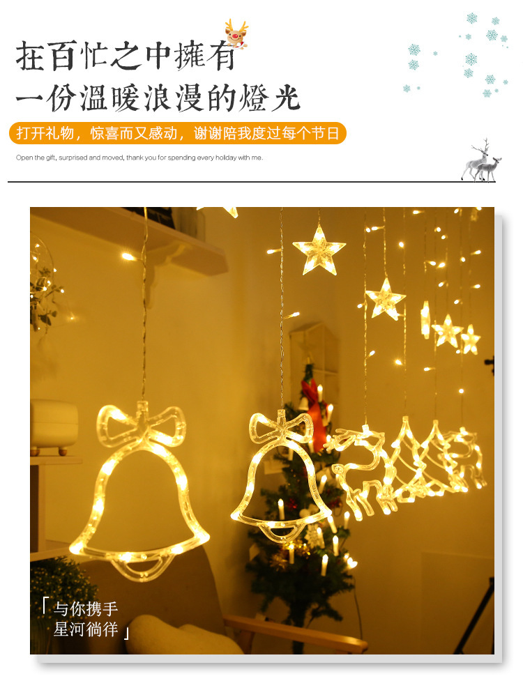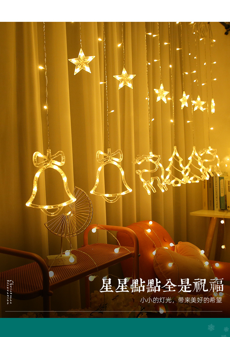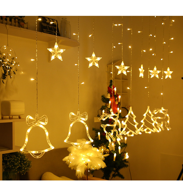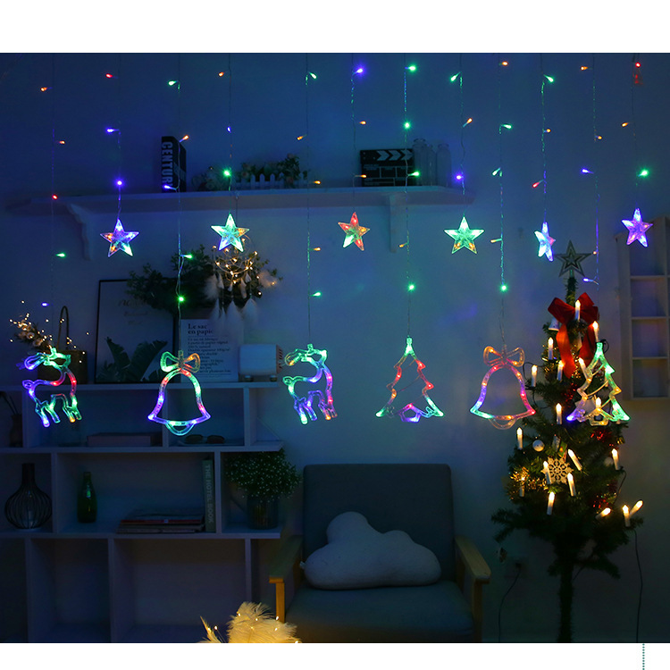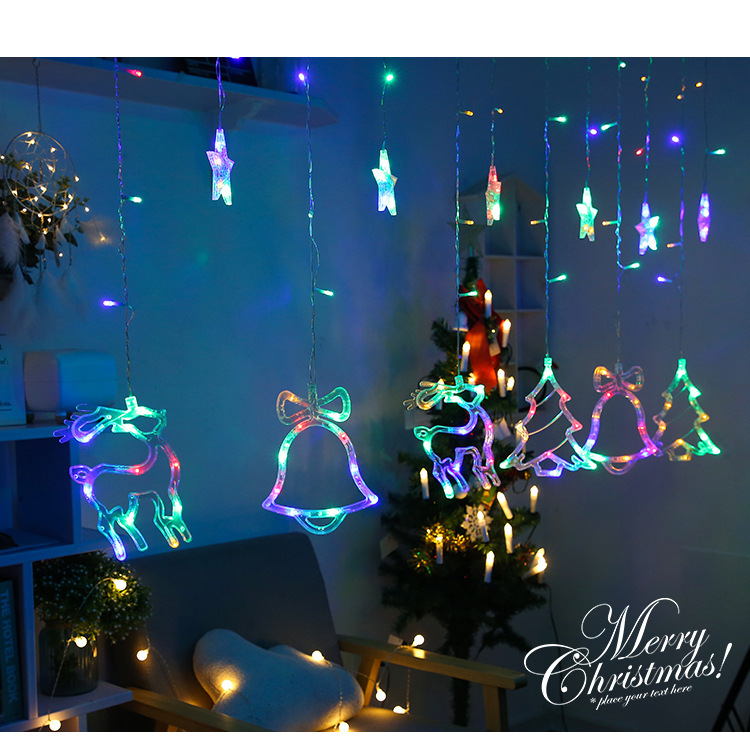 Led Christmas Curtain Light Bedroom Window Decoration Bell Elk Christmas Tree Remote Control Set Christmas Curtain Light String
