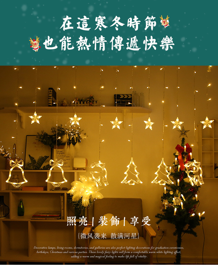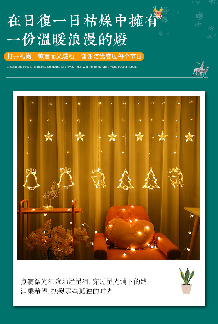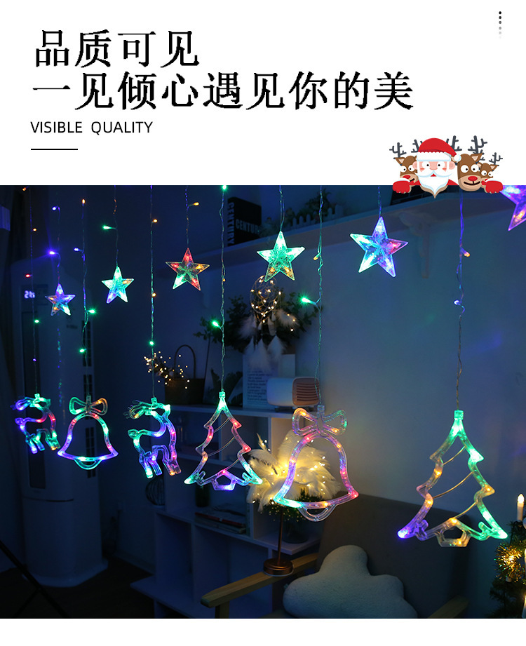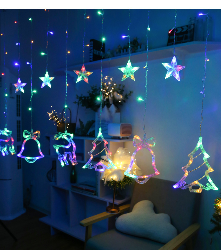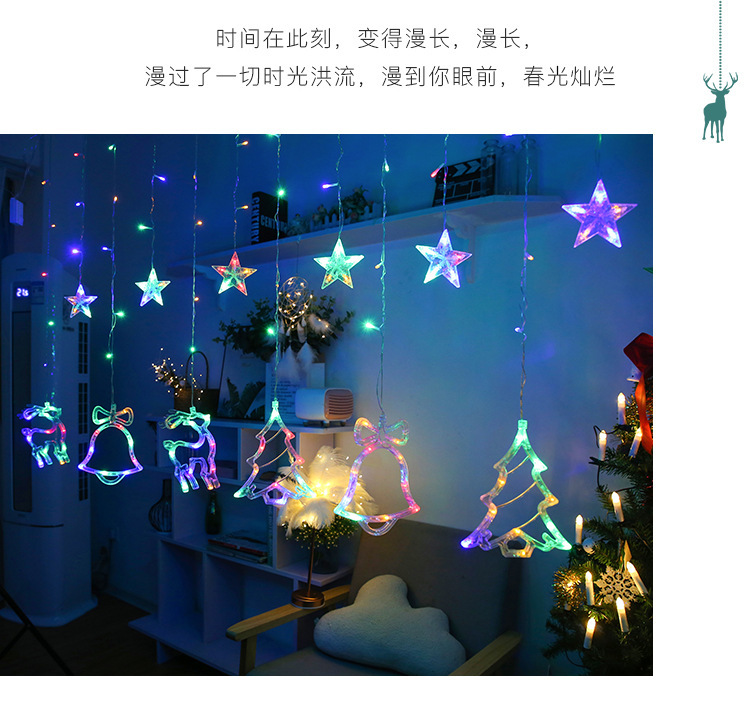 Led Christmas Curtain Light Bedroom Window Decoration Bell Elk Christmas Tree Remote Control Set Christmas Curtain Light String