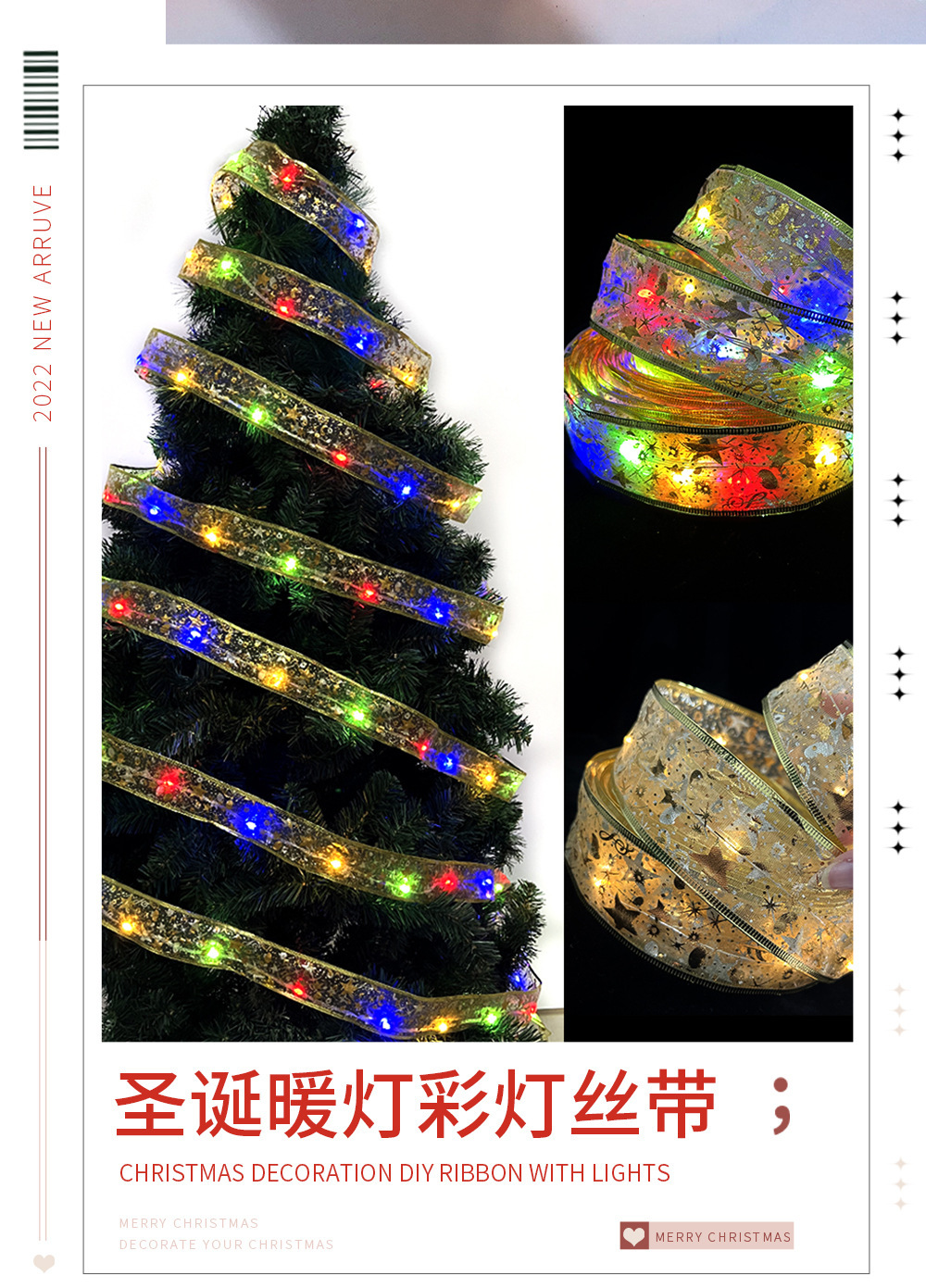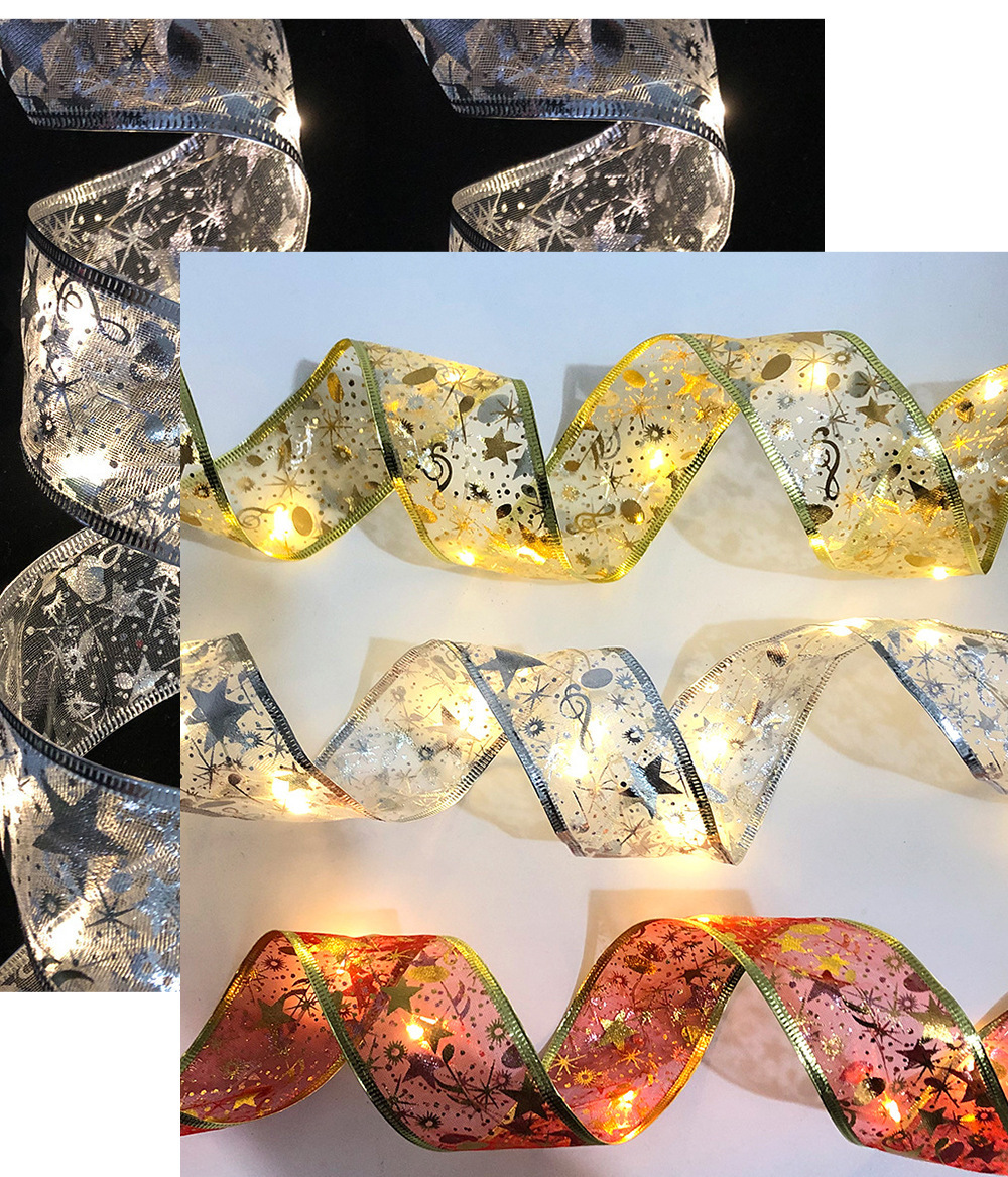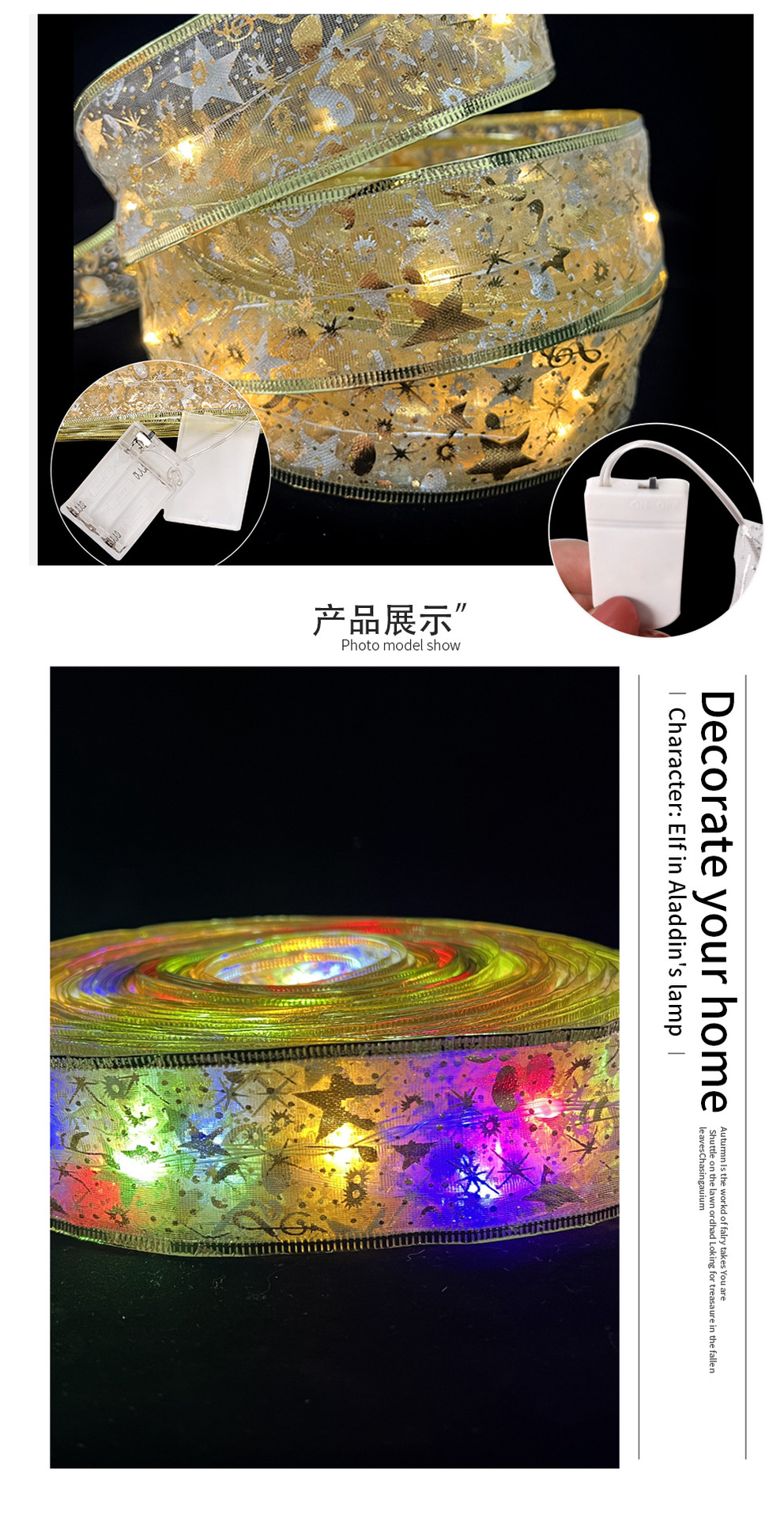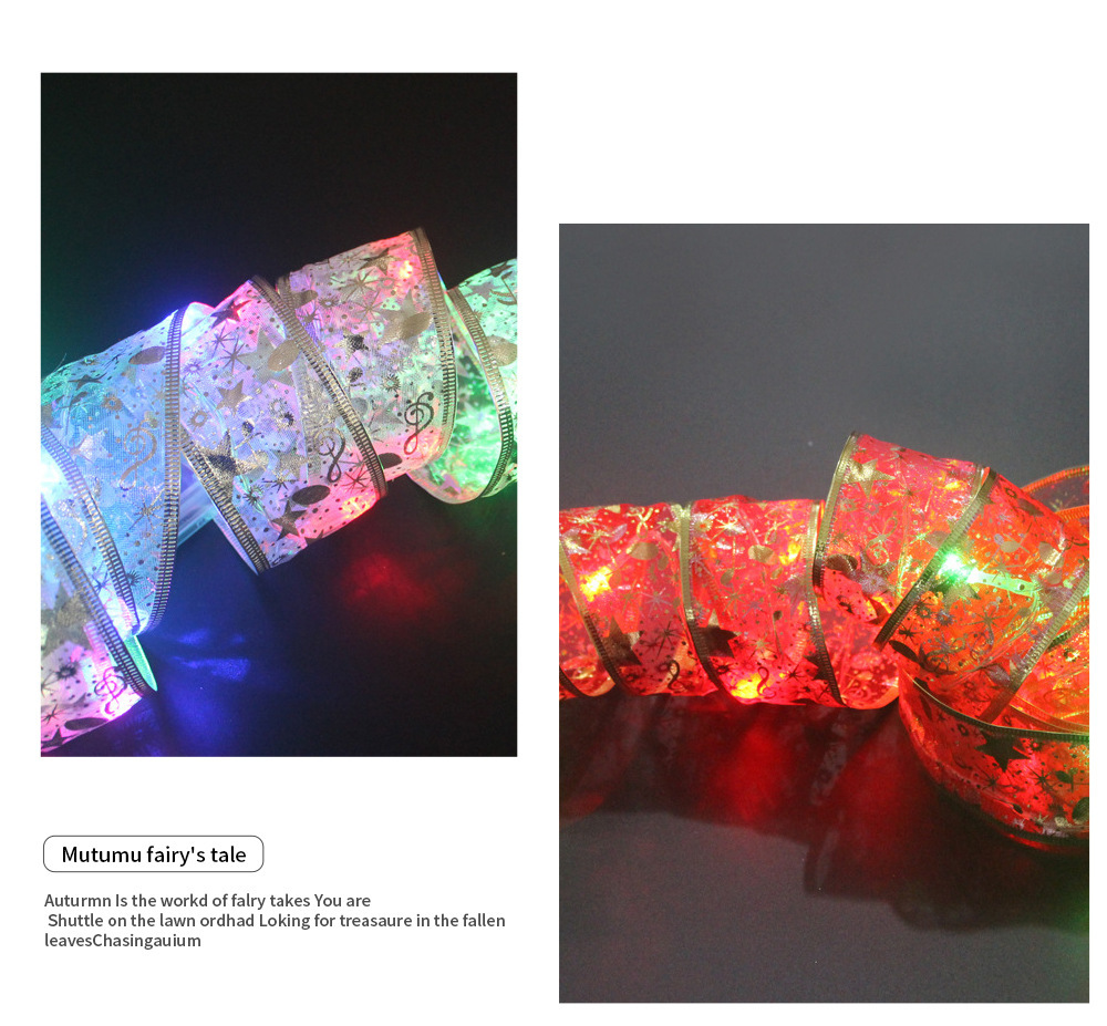 Led Christmas Ribbon Lights Christmas Tree Gift Box Decoration Satin Lights Double Gold Stamping Led Ribbon Copper Wire Lights