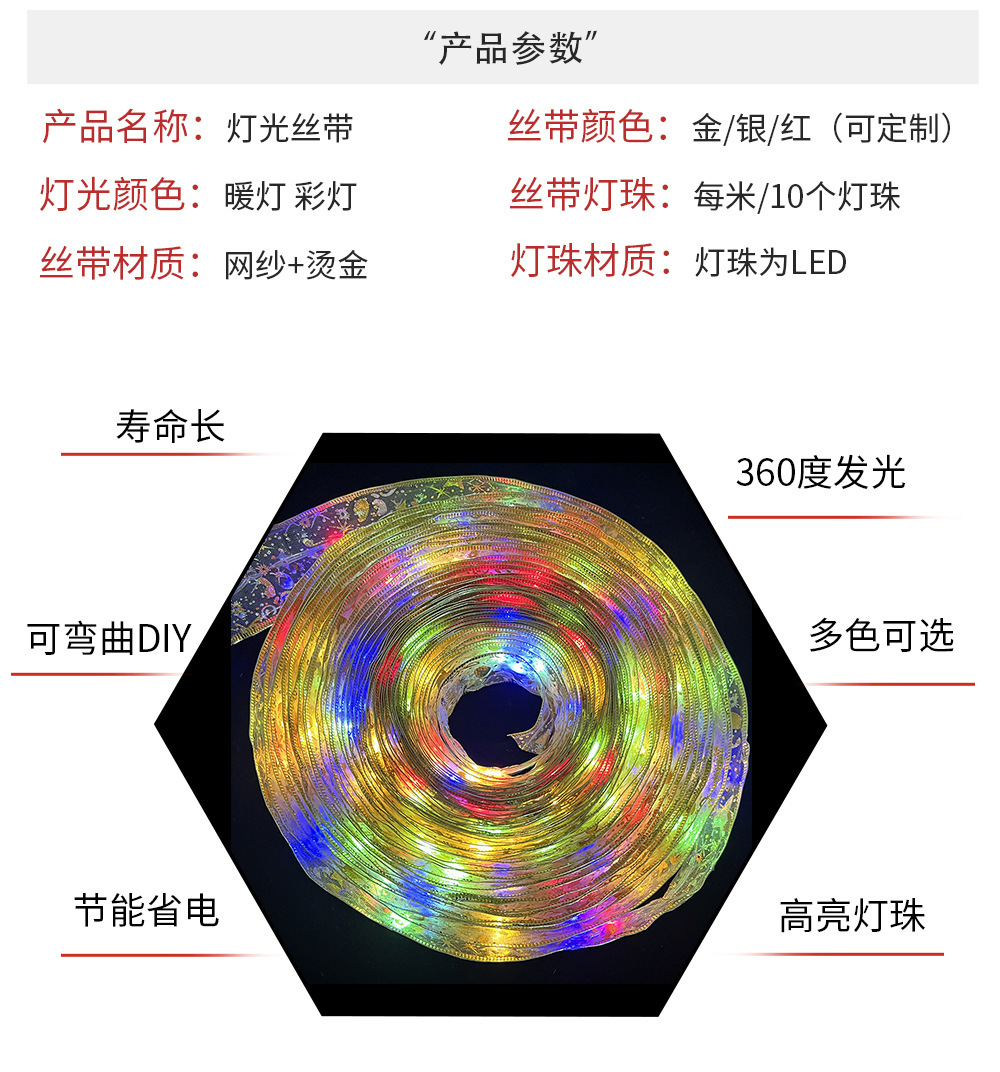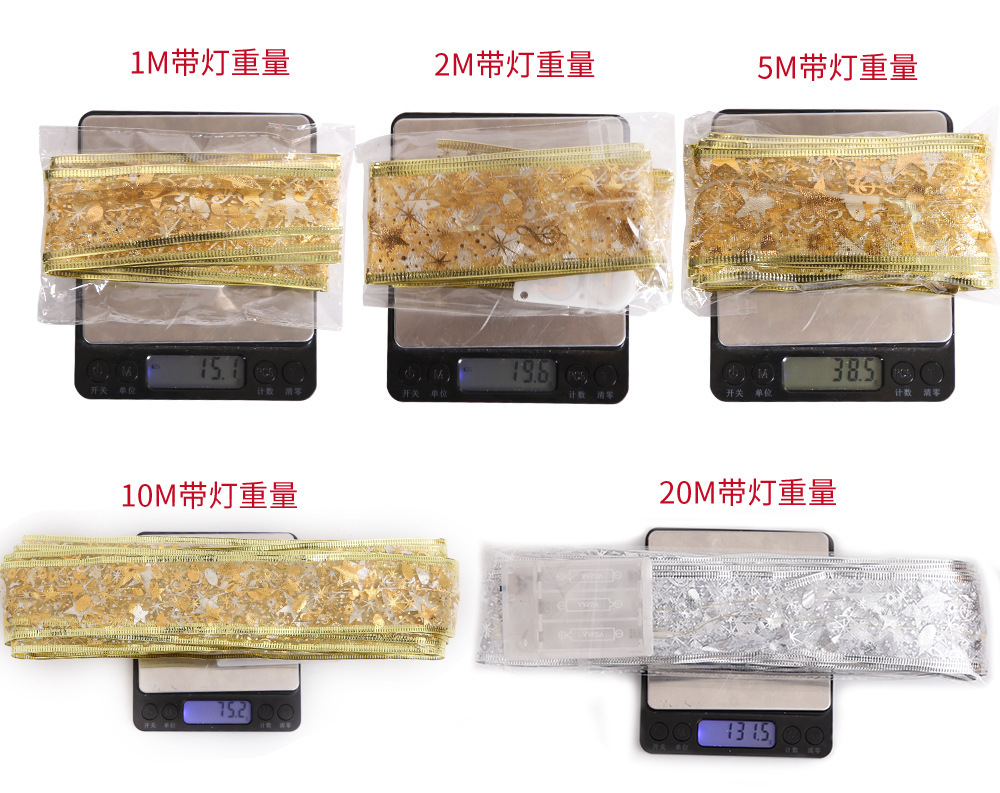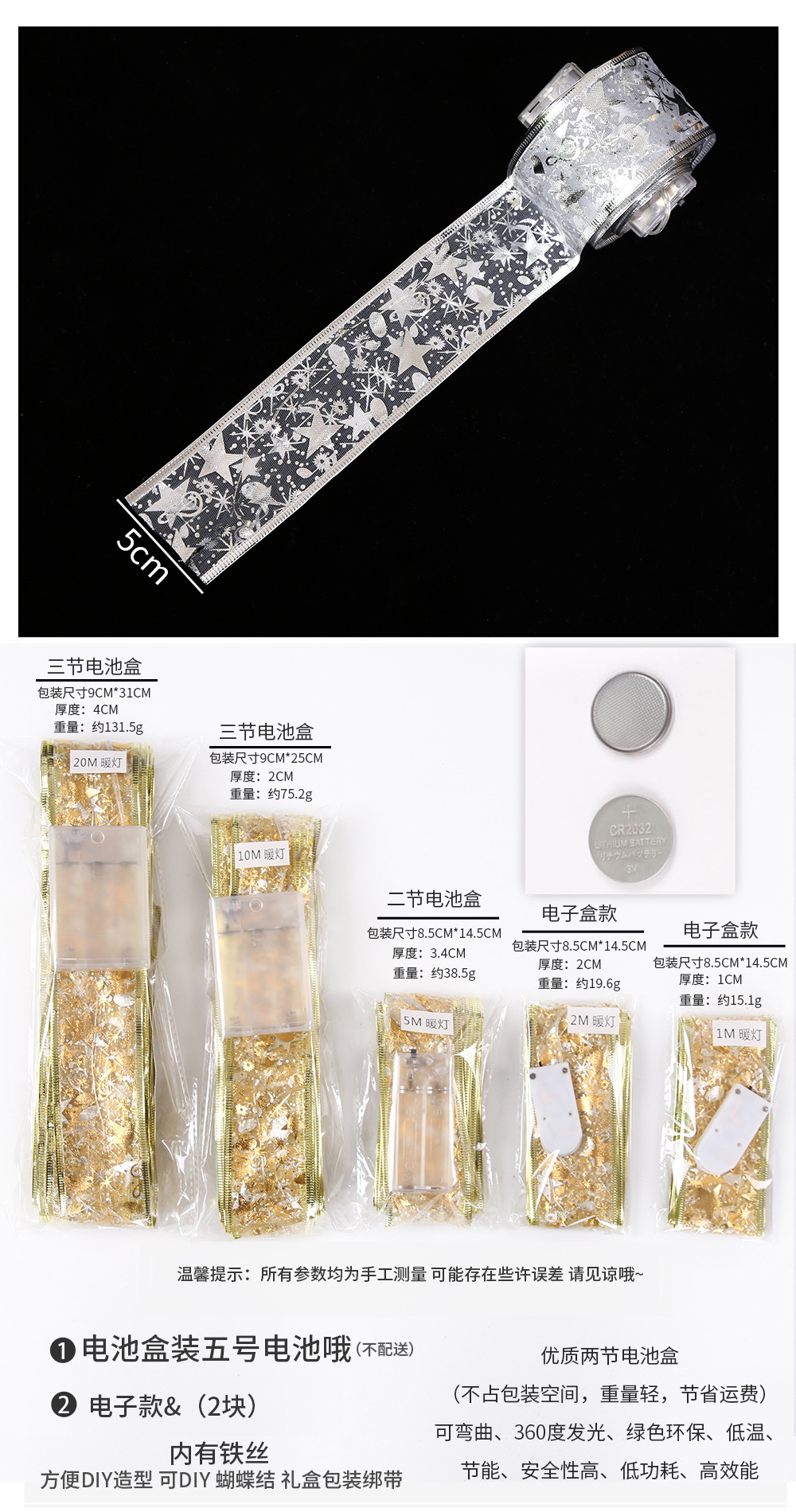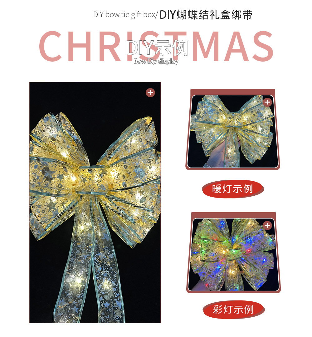 Led Christmas Ribbon Lights Christmas Tree Gift Box Decoration Satin Lights Double Gold Stamping Led Ribbon Copper Wire Lights