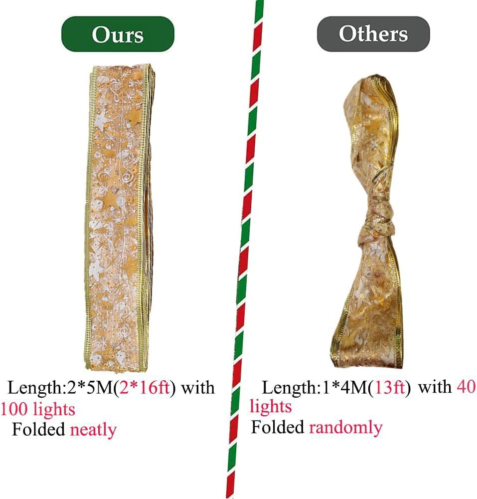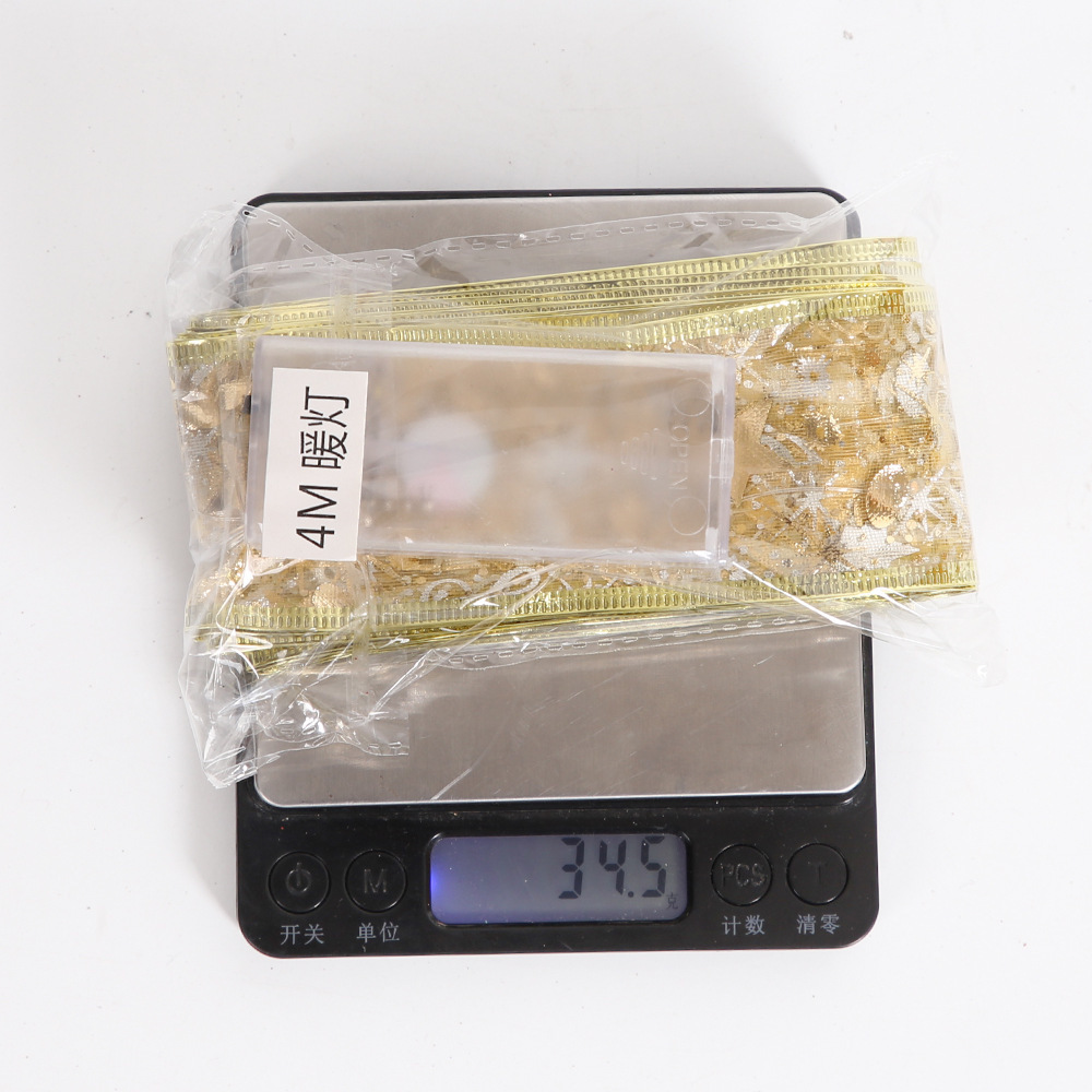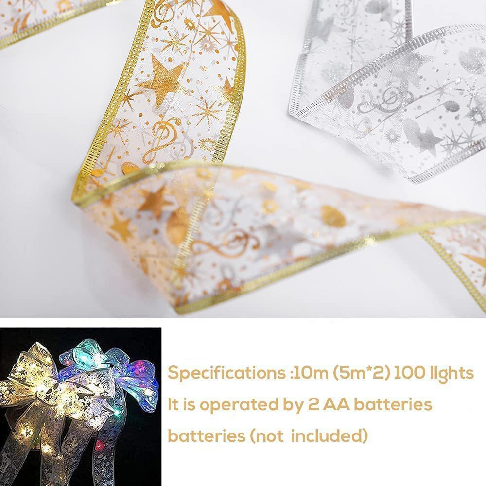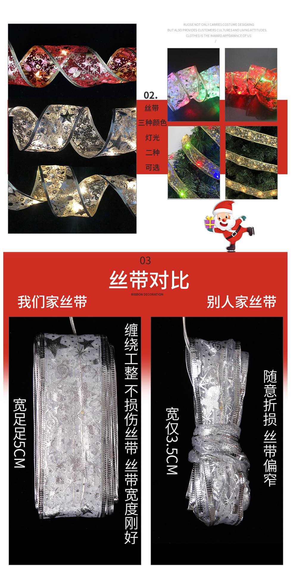 Led Christmas Ribbon Lights Christmas Tree Gift Box Decoration Satin Lights Double Gold Stamping Led Ribbon Copper Wire Lights