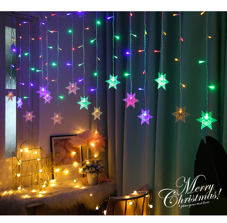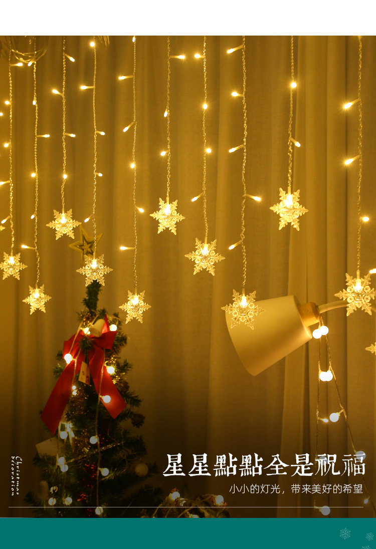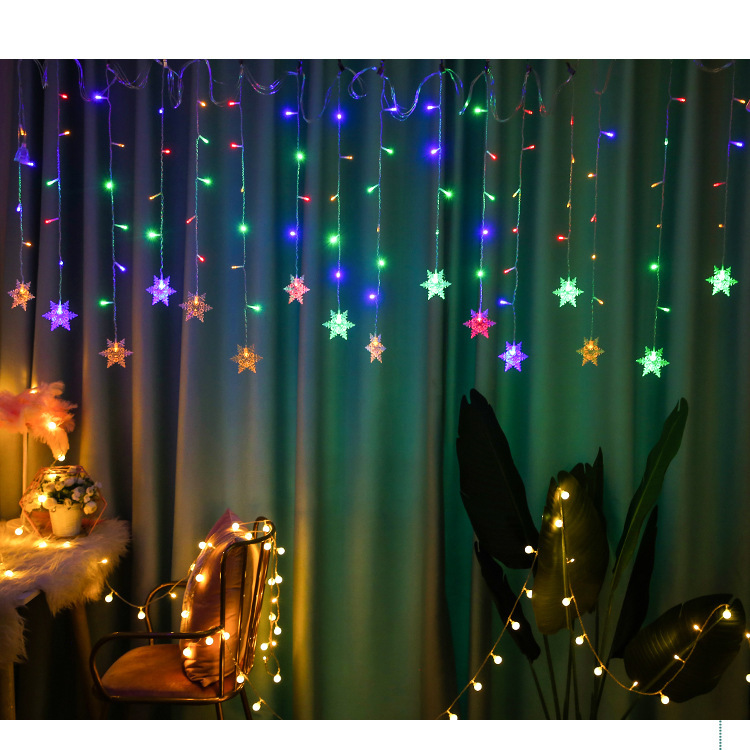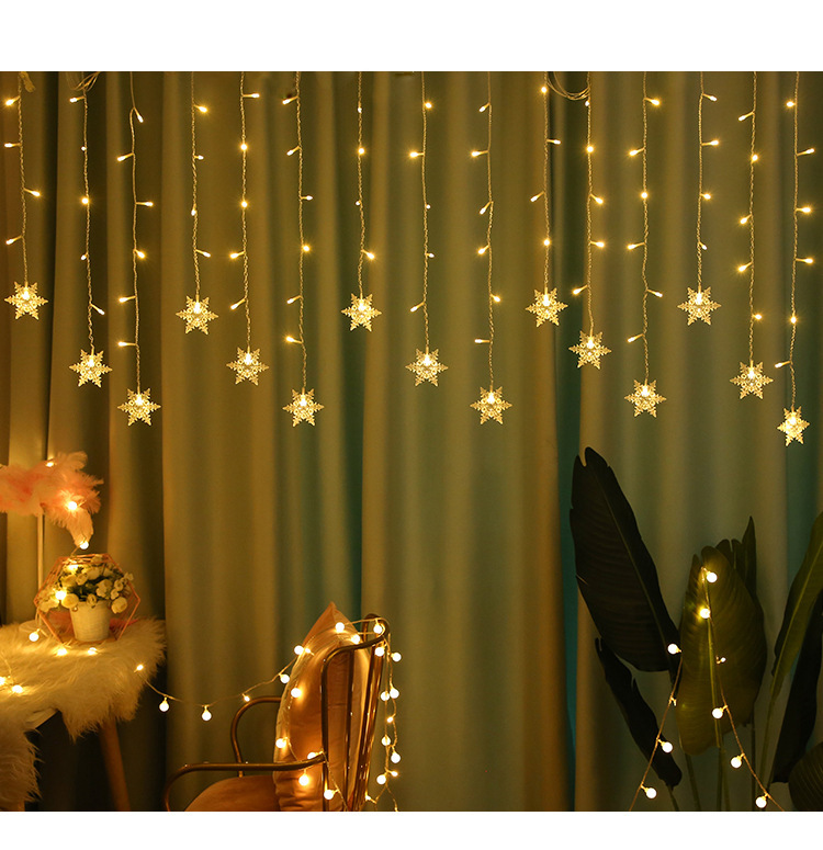 Led Christmas Snow Curtain Light Window Window Interior Decoration Of Different Levels Star Curtain Light Five-Pointed Star Flashing Light