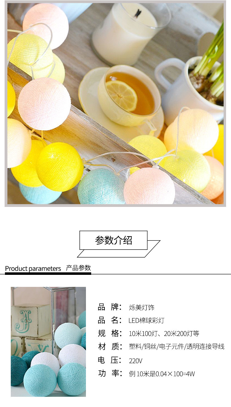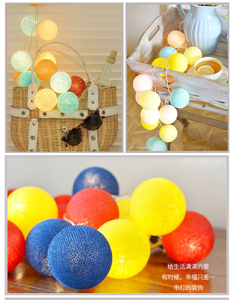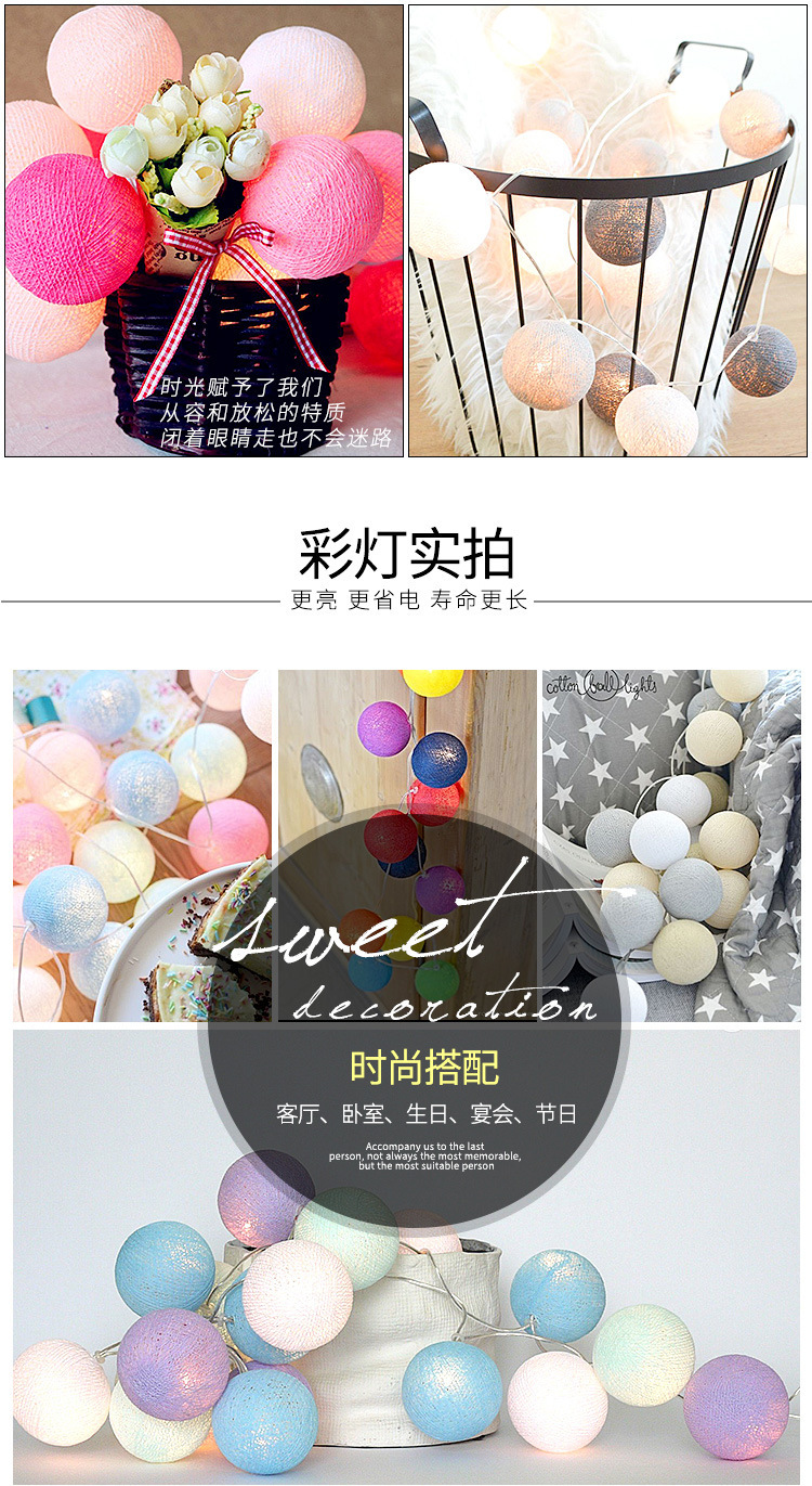 Led Thai Cotton Ball Light String Creative Christmas Decoration Braided Round Ball Usb Light Macaron Round Ball Light String